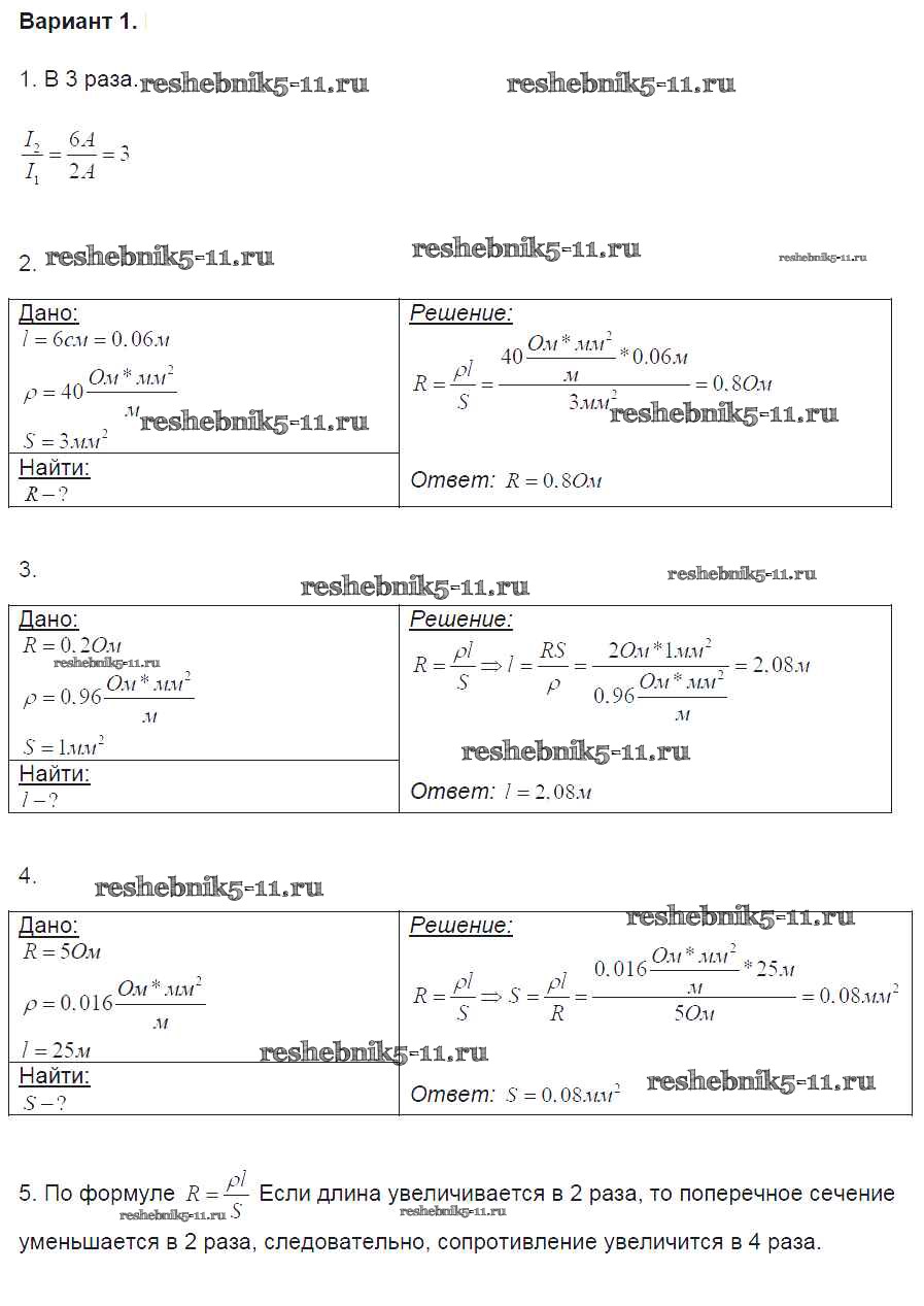 Готовая домашняя работа с ответами по Физике за 8 класс Громцева Контрольные и самостоятельные работы УМК Экзамен 2017 ФГОС - СР №32. Зависимость силы тока от напряжения. Электрическое сопротивление проводников вариант-1