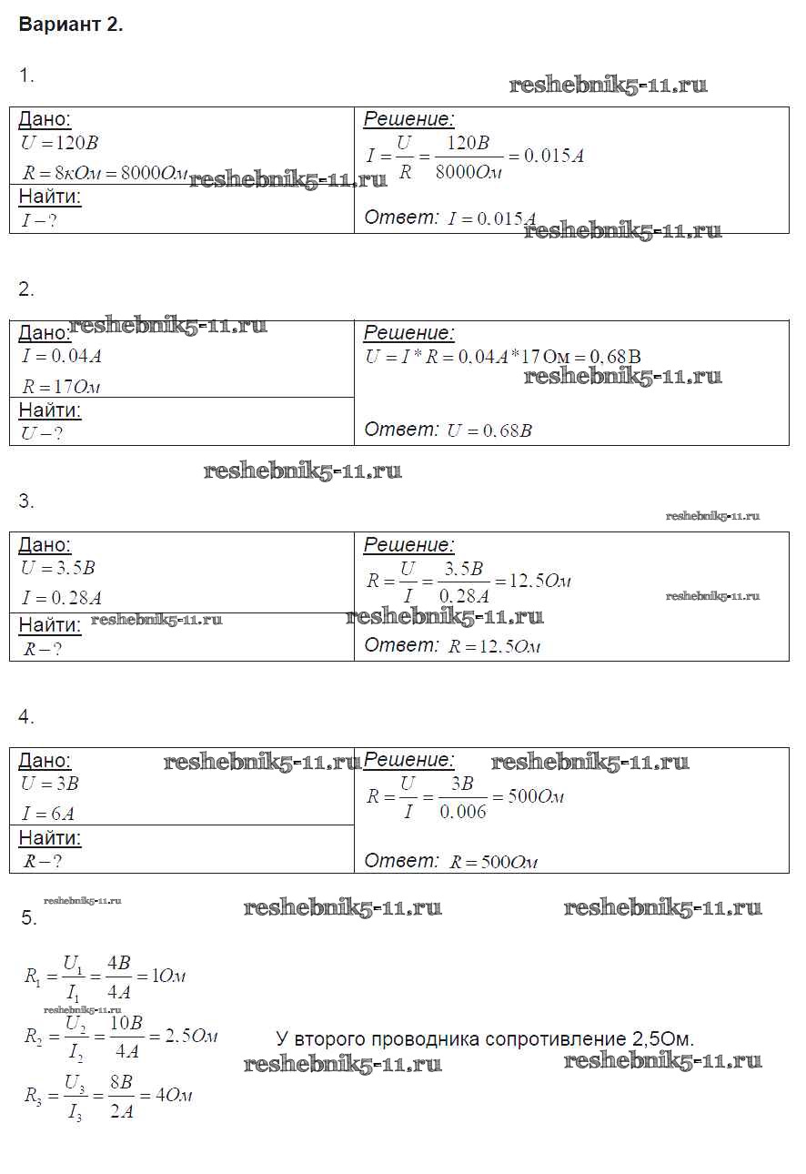 Готовая домашняя работа с ответами по Физике за 8 класс Громцева Контрольные и самостоятельные работы УМК Экзамен 2017 ФГОС - СР №33. Закон Ома для участка цепи вариант-2