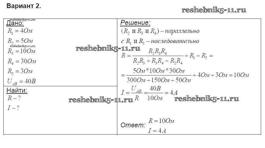 Готовая домашняя работа с ответами по Физике за 8 класс Громцева Контрольные и самостоятельные работы УМК Экзамен 2017 ФГОС - СР №35. Последовательное и параллельное соединение проводников. Расчет полного сопротивления и силы тока в цепи вариант-2