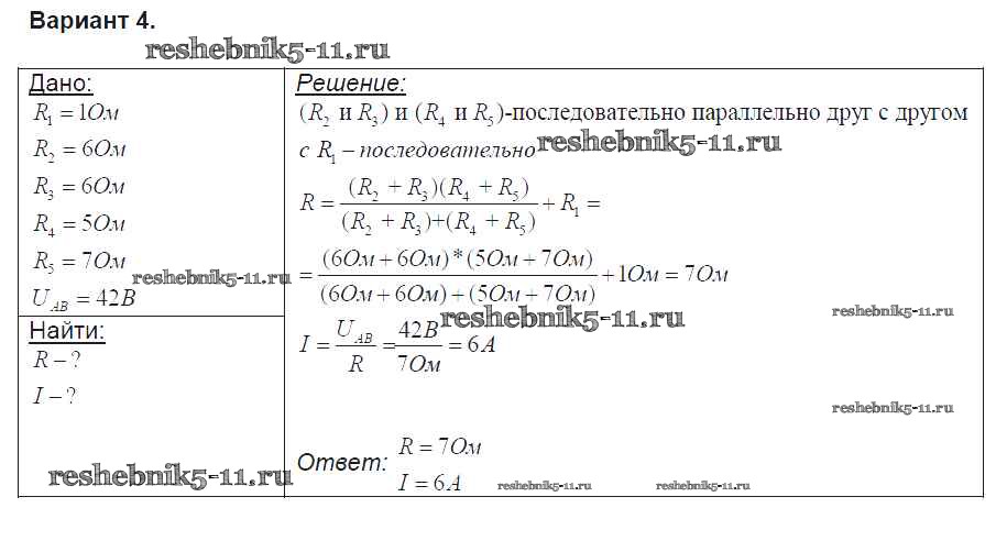 Готовая домашняя работа с ответами по Физике за 8 класс Громцева Контрольные и самостоятельные работы УМК Экзамен 2017 ФГОС - СР №35. Последовательное и параллельное соединение проводников. Расчет полного сопротивления и силы тока в цепи вариант-4