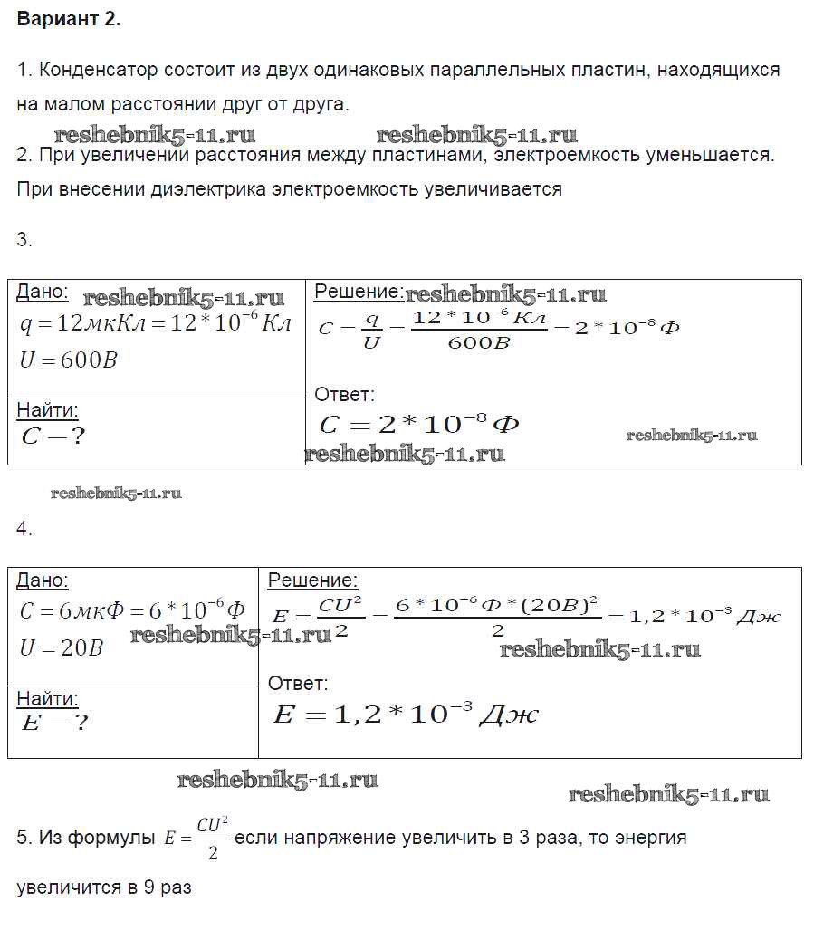 Готовая домашняя работа с ответами по Физике за 8 класс Громцева Контрольные и самостоятельные работы УМК Экзамен 2017 ФГОС - СР №39. Конденсатор вариант-2