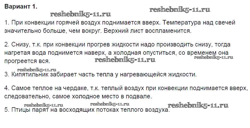 Готовая домашняя работа с ответами по Физике за 8 класс Громцева Контрольные и самостоятельные работы УМК Экзамен 2017 ФГОС - СР №4. Конвекция вариант-1