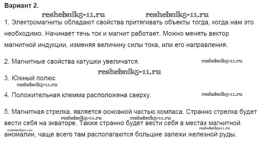 Готовая домашняя работа с ответами по Физике за 8 класс Громцева Контрольные и самостоятельные работы УМК Экзамен 2017 ФГОС - СР №42. Магнитное поле катушки с током. Электромагниты и их применение. Магнитное поле Земли вариант-2