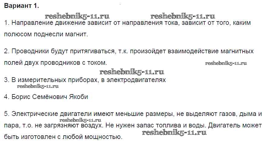 Готовая домашняя работа с ответами по Физике за 8 класс Громцева Контрольные и самостоятельные работы УМК Экзамен 2017 ФГОС - СР №43. Действие магнитного поля на проводник с током. Электрический двигатель вариант-1