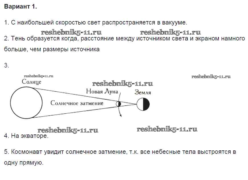 Готовая домашняя работа с ответами по Физике за 8 класс Громцева Контрольные и самостоятельные работы УМК Экзамен 2017 ФГОС - СР №45. Распространение света вариант-1
