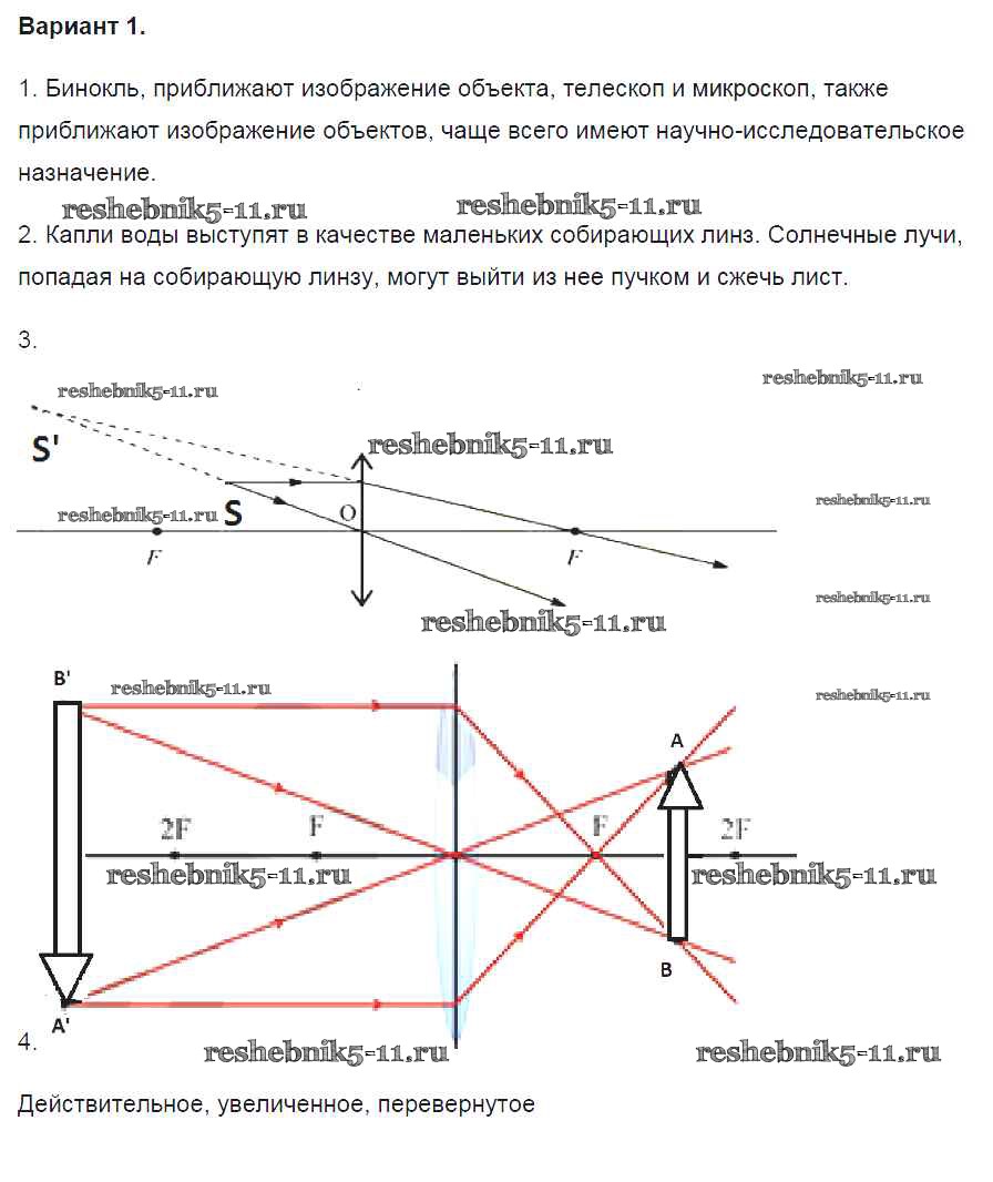 Готовая домашняя работа с ответами по Физике за 8 класс Громцева Контрольные и самостоятельные работы УМК Экзамен 2017 ФГОС - СР №48. Линзы. Оптическая сила линзы. Глаз и зрение вариант-1
