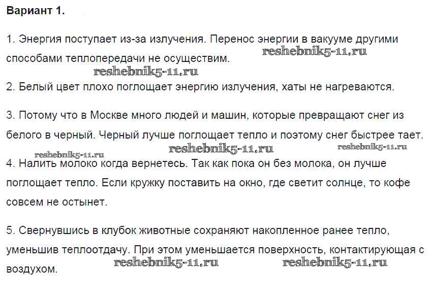 Готовая домашняя работа с ответами по Физике за 8 класс Громцева Контрольные и самостоятельные работы УМК Экзамен 2017 ФГОС - СР №5. Излучение вариант-1