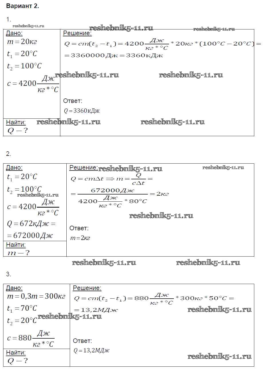Готовая домашняя работа с ответами по Физике за 8 класс Громцева Контрольные и самостоятельные работы УМК Экзамен 2017 ФГОС - СР №6. Количество теплоты. Удельная теплоемкость. Расчет количества теплоты вариант-2