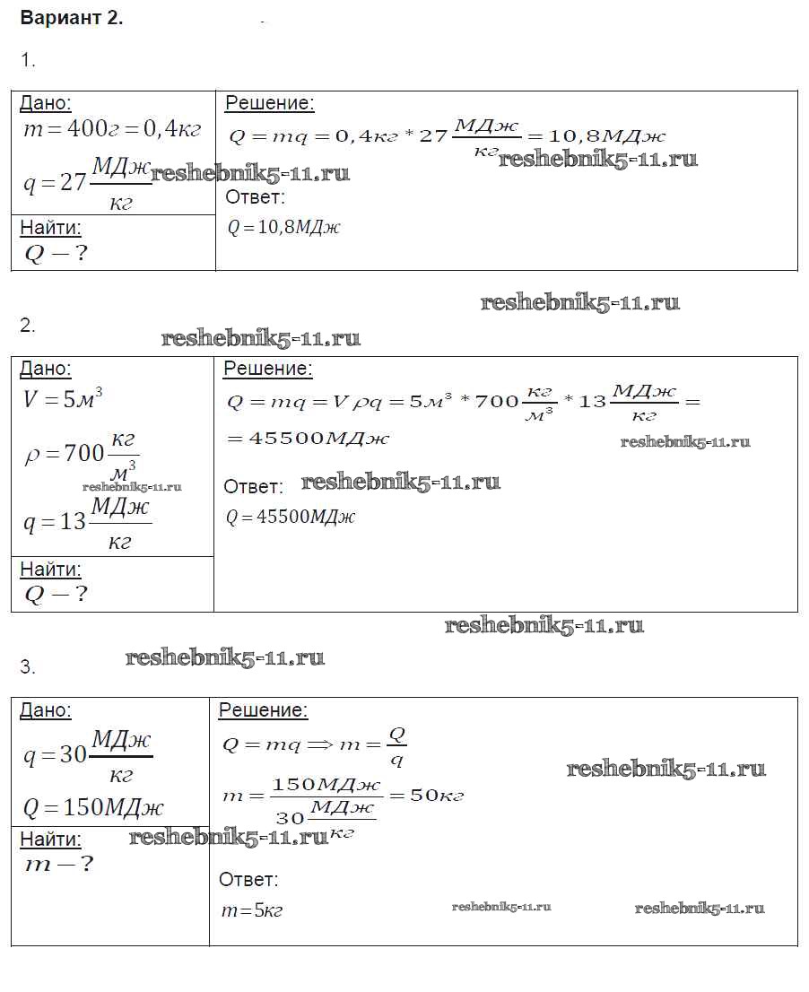 Готовая домашняя работа с ответами по Физике за 8 класс Громцева Контрольные и самостоятельные работы УМК Экзамен 2017 ФГОС - СР №8. Энергия топлива. Удельная теплота сгорания вариант-2