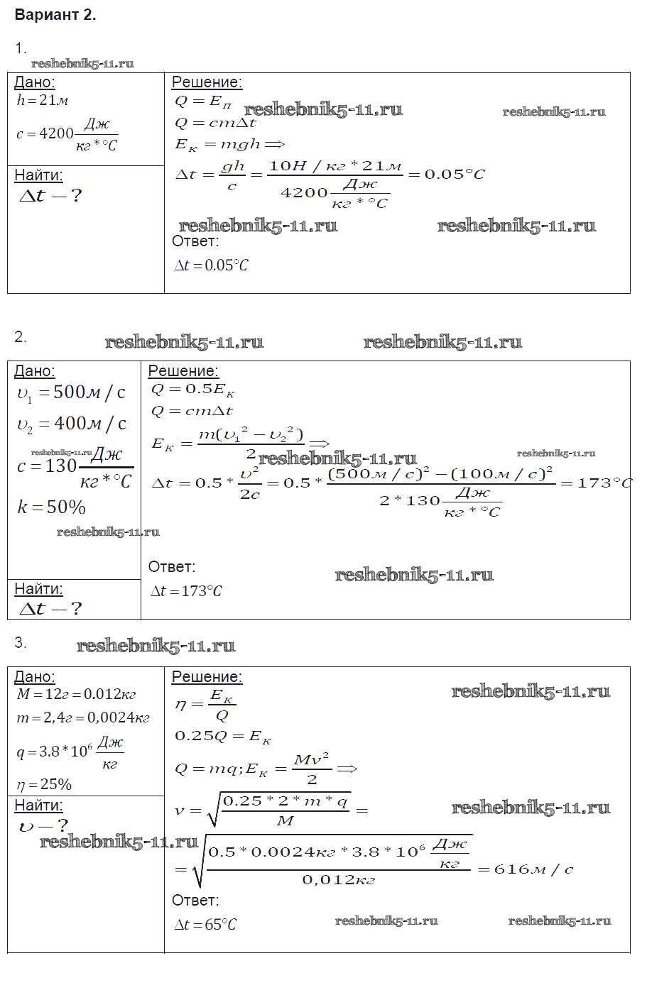 Готовая домашняя работа с ответами по Физике за 8 класс Громцева Контрольные и самостоятельные работы УМК Экзамен 2017 ФГОС - СР №9. Закон сохранения и превращения энергии в механических и тепловых процессах вариант-2