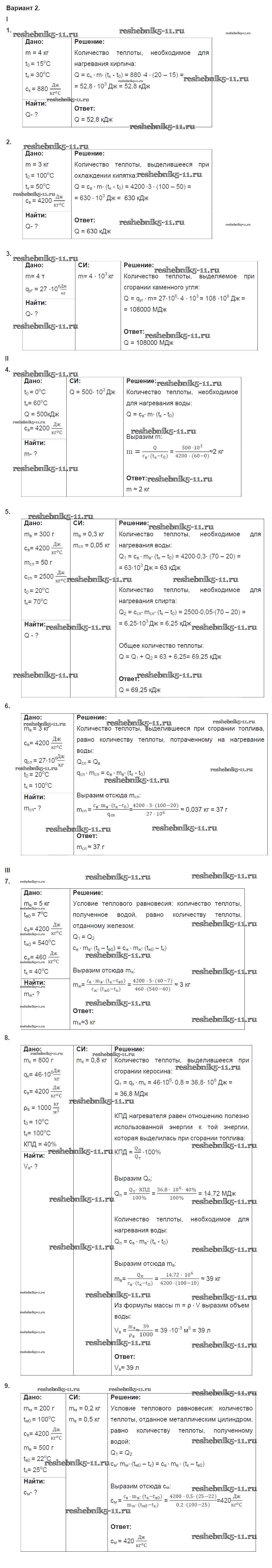 Готовая домашняя работа с ответами по Физике за 8 класс Марон Дидактические материалы Вертикаль Дрофа 2016 ФГОС - КР №1. Расчет количества теплоты. Варианты 2