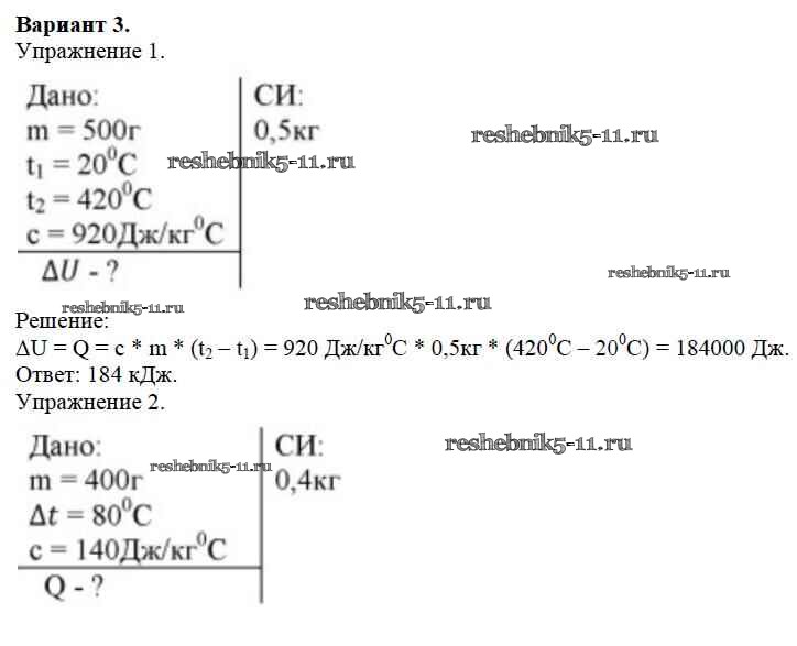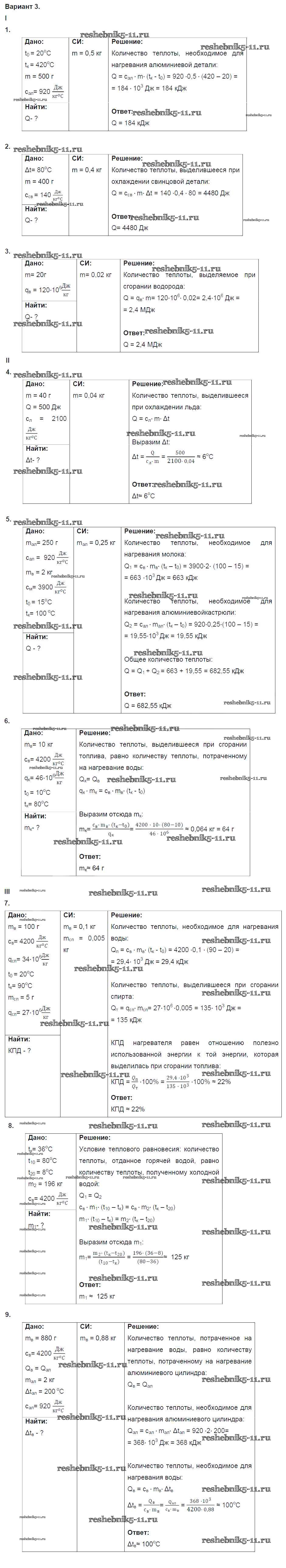 СР №3. Количество теплоты. Энергия топлива. Варианты