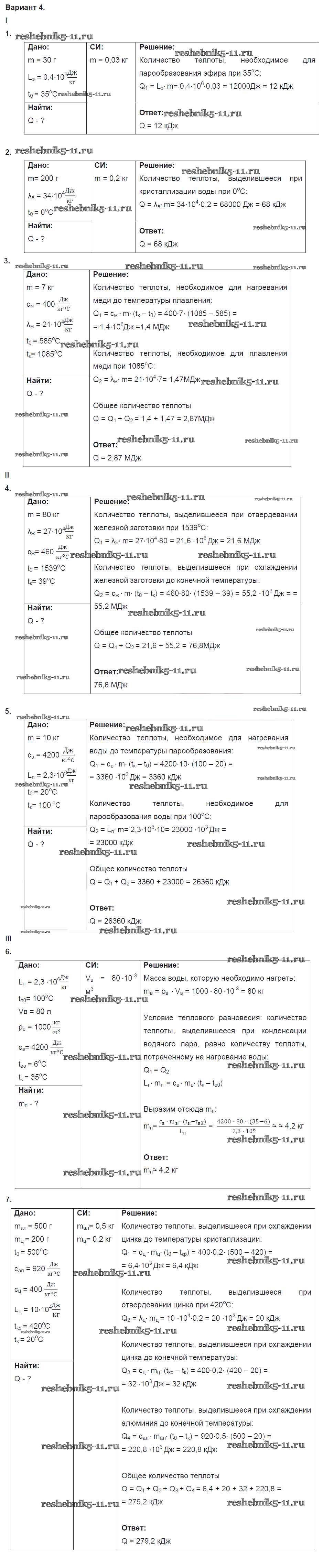 Готовая домашняя работа с ответами по Физике за 8 класс Марон Дидактические материалы Вертикаль Дрофа 2016 ФГОС - КР №2. Изменение агрегатных состояний вещества. Варианты 4