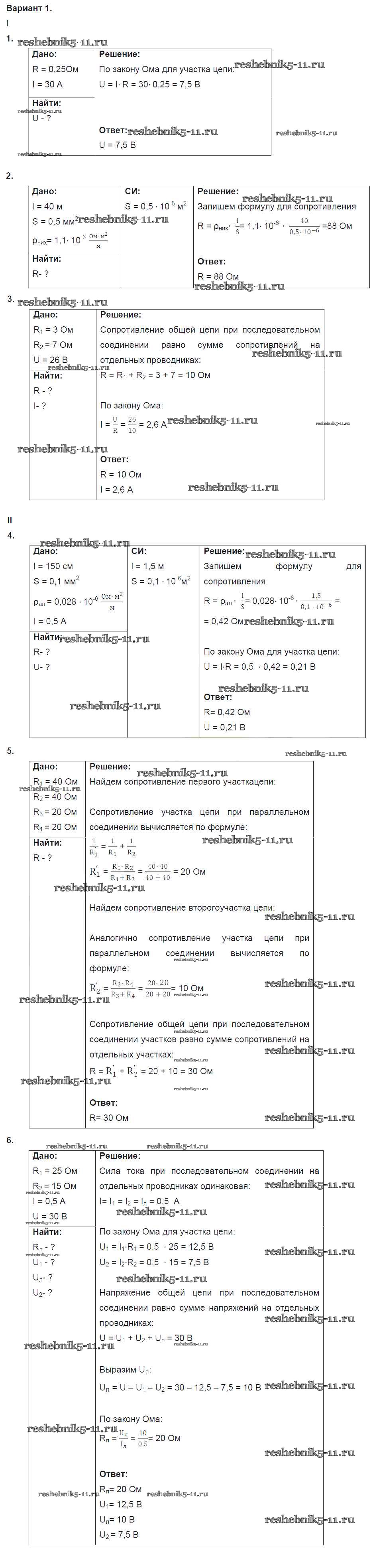 Готовая домашняя работа с ответами по Физике за 8 класс Марон Дидактические материалы Вертикаль Дрофа 2016 ФГОС - КР №3. Электрический ток. Варианты 1