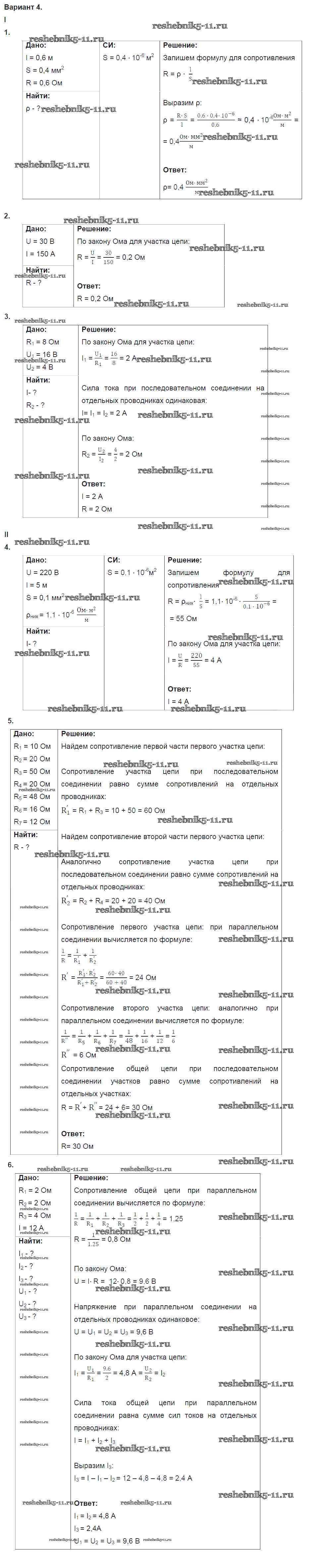 Готовая домашняя работа с ответами по Физике за 8 класс Марон Дидактические материалы Вертикаль Дрофа 2016 ФГОС - КР №3. Электрический ток. Варианты 4