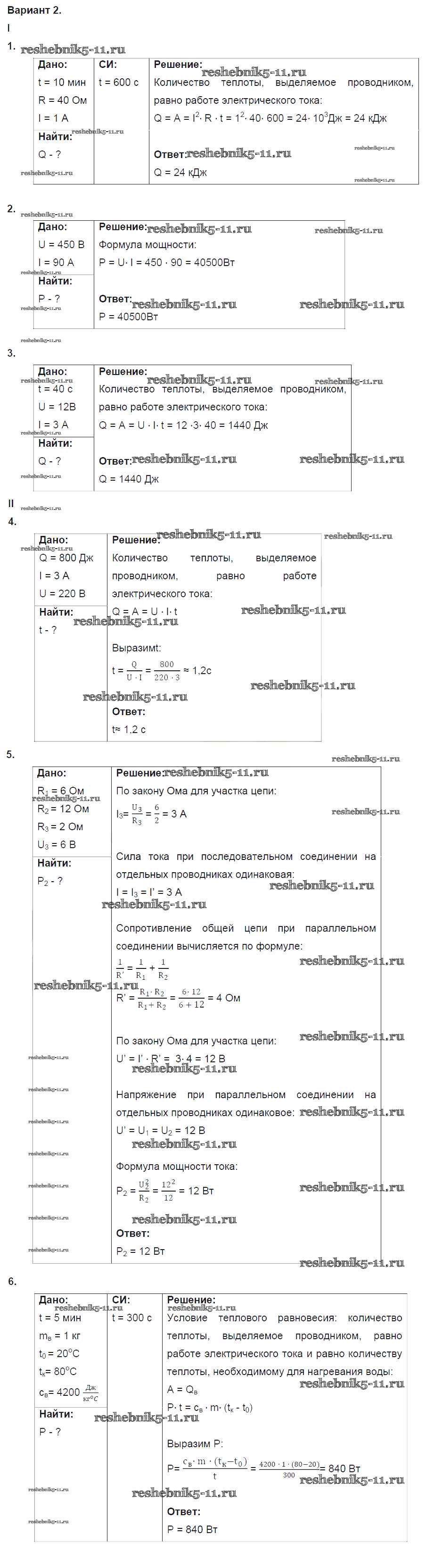 Тест №8. Работа и мощность тока. Варианты