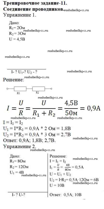 Готовая домашняя работа с ответами по Физике за 8 класс Марон Дидактические материалы Вертикаль Дрофа 2016 ФГОС - Тренировочные задания 11. Соединение проводников