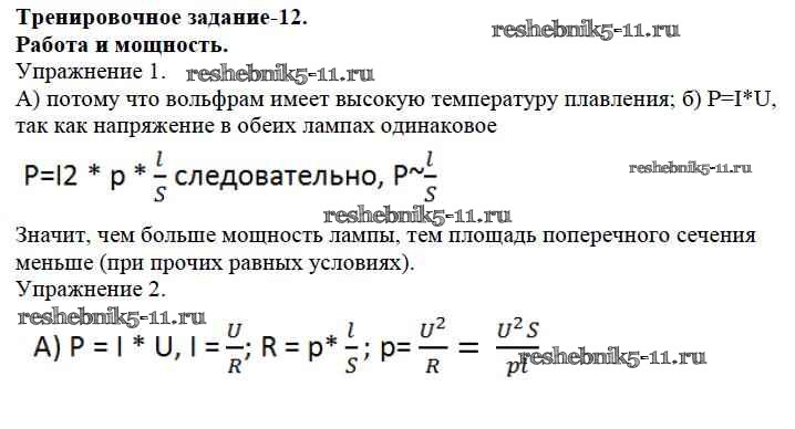 Решебник 1 / тренировочное задание / 12. Работа и мощность тока