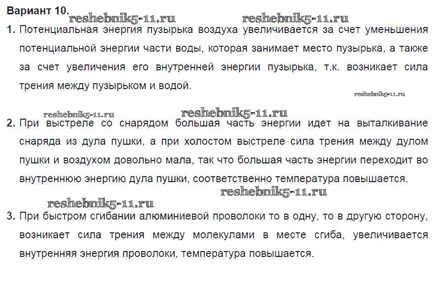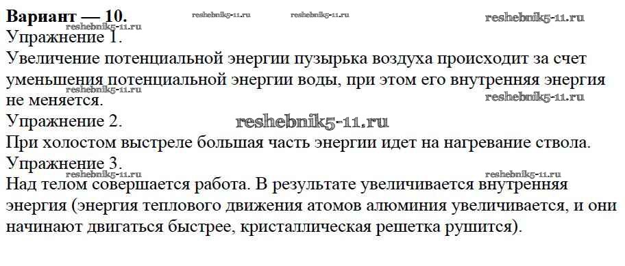 Готовая домашняя работа с ответами по Физике за 8 класс Марон Дидактические материалы Вертикаль Дрофа 2016 ФГОС - СР №1. Внутренняя энергия. Варианты 10