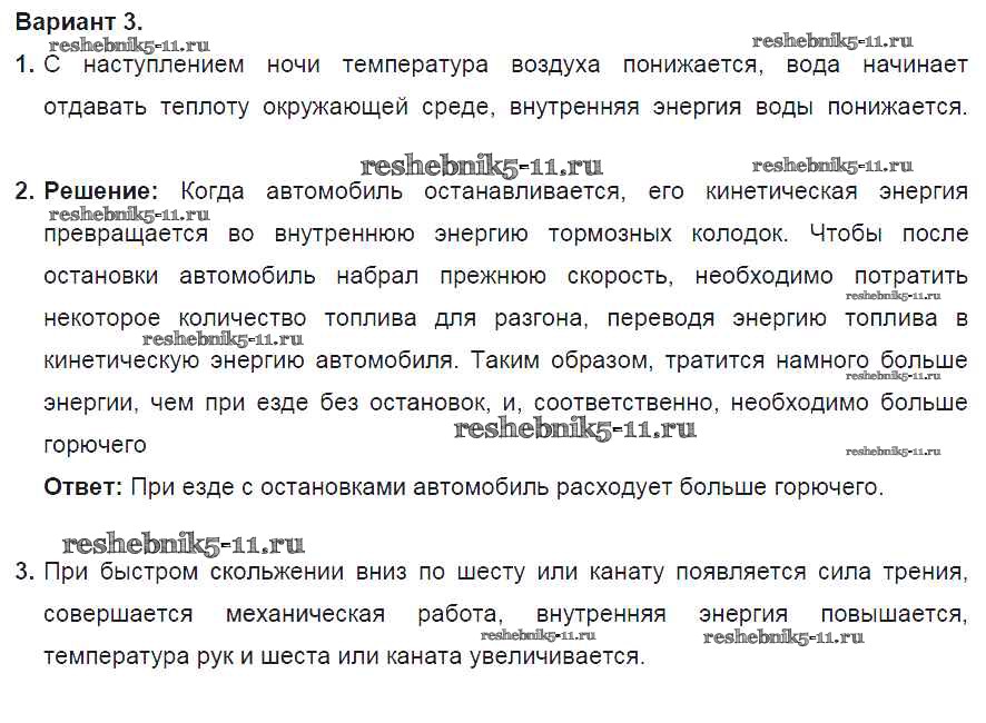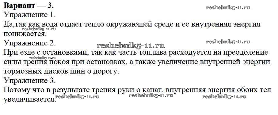 Готовая домашняя работа с ответами по Физике за 8 класс Марон Дидактические материалы Вертикаль Дрофа 2016 ФГОС - СР №1. Внутренняя энергия. Варианты 3