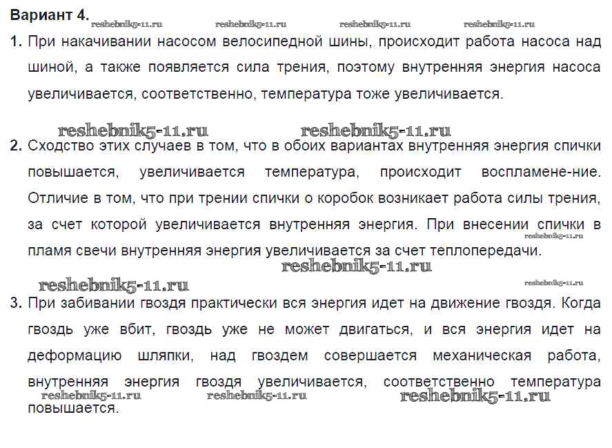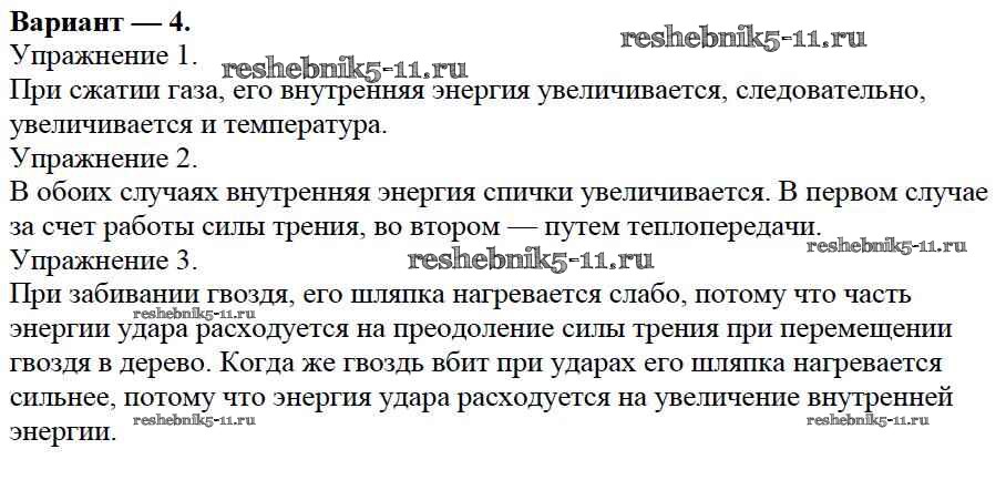 Готовая домашняя работа с ответами по Физике за 8 класс Марон Дидактические материалы Вертикаль Дрофа 2016 ФГОС - СР №1. Внутренняя энергия. Варианты 4