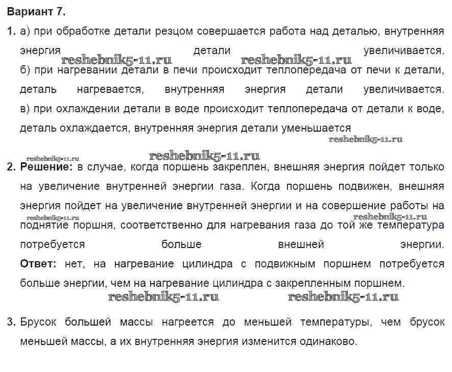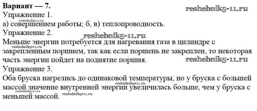 Готовая домашняя работа с ответами по Физике за 8 класс Марон Дидактические материалы Вертикаль Дрофа 2016 ФГОС - СР №1. Внутренняя энергия. Варианты 7