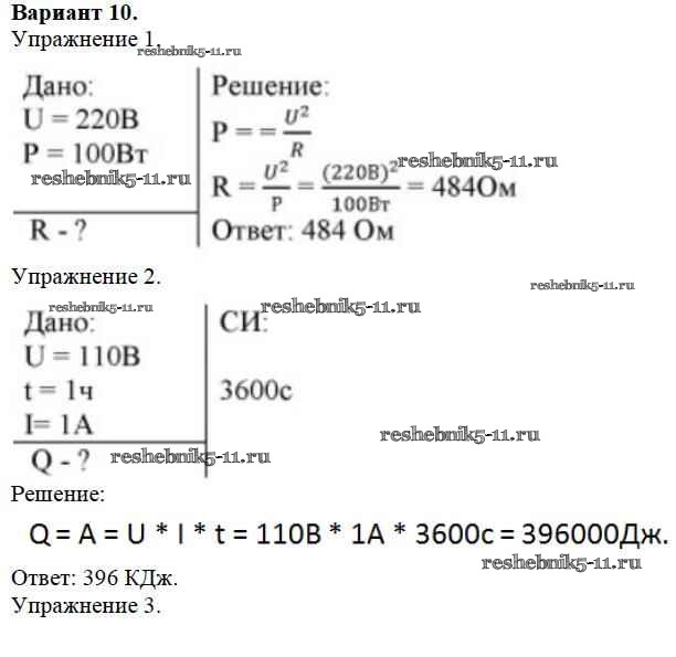 СР №10. Работа и мощность тока. Варианты