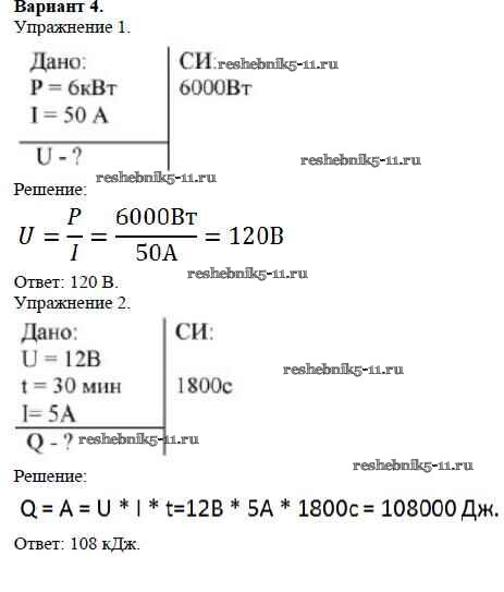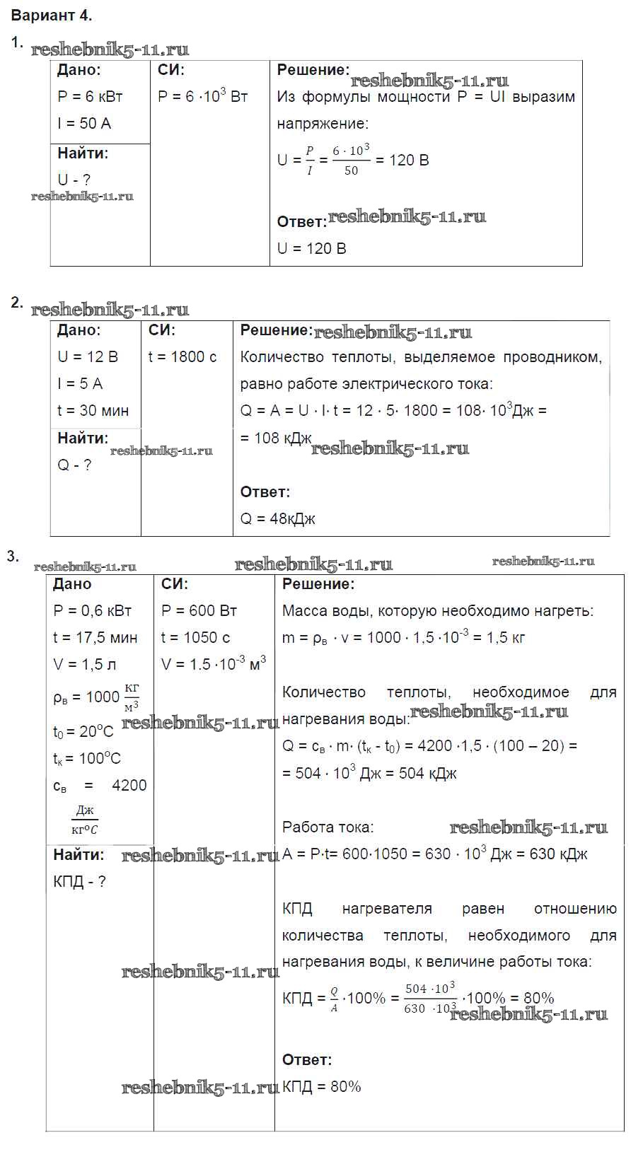 Готовая домашняя работа с ответами по Физике за 8 класс Марон Дидактические материалы Вертикаль Дрофа 2016 ФГОС - СР №10. Работа и мощность тока. Варианты 4