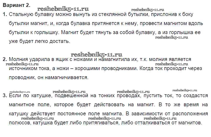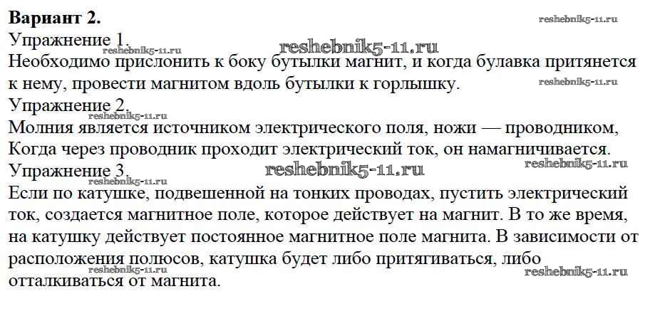 Готовая домашняя работа с ответами по Физике за 8 класс Марон Дидактические материалы Вертикаль Дрофа 2016 ФГОС - СР №11. Электромагнитные явления. Варианты 2
