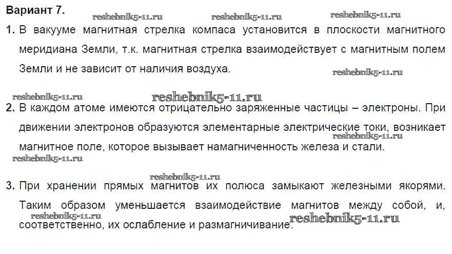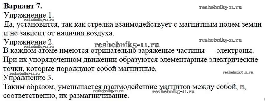 Готовая домашняя работа с ответами по Физике за 8 класс Марон Дидактические материалы Вертикаль Дрофа 2016 ФГОС - СР №11. Электромагнитные явления. Варианты 7