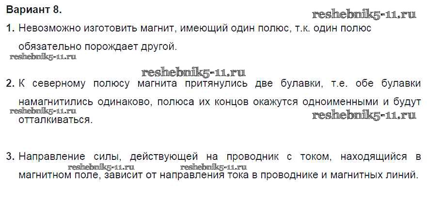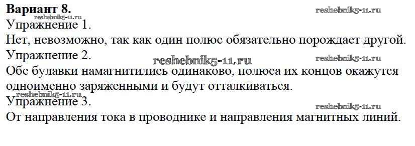 Готовая домашняя работа с ответами по Физике за 8 класс Марон Дидактические материалы Вертикаль Дрофа 2016 ФГОС - СР №11. Электромагнитные явления. Варианты 8