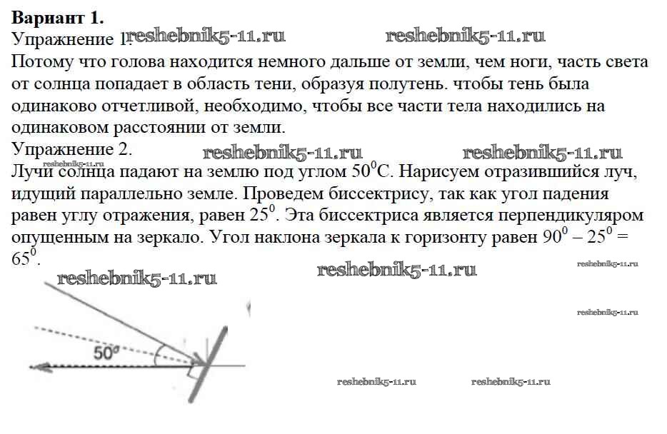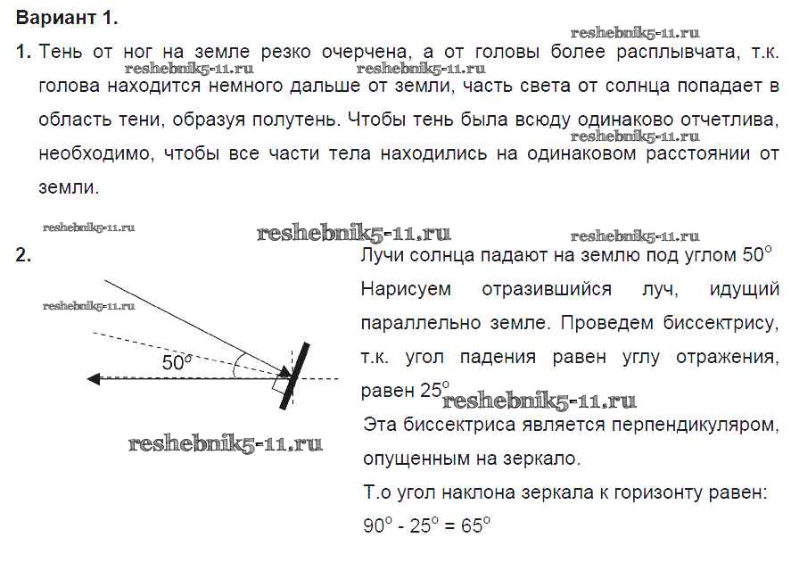 Готовая домашняя работа с ответами по Физике за 8 класс Марон Дидактические материалы Вертикаль Дрофа 2016 ФГОС - СР №12. Отражение света. Плоское зеркало. Варианты 1
