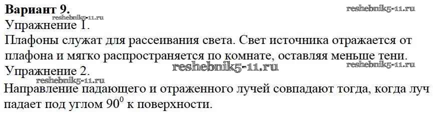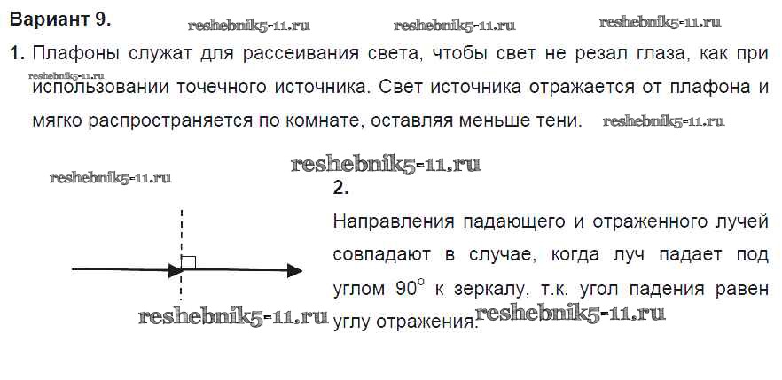Готовая домашняя работа с ответами по Физике за 8 класс Марон Дидактические материалы Вертикаль Дрофа 2016 ФГОС - СР №12. Отражение света. Плоское зеркало. Варианты 9