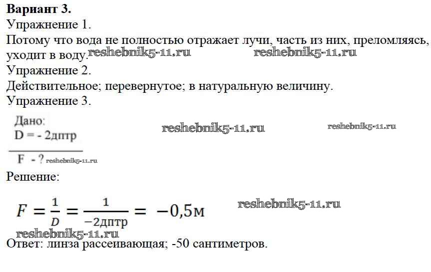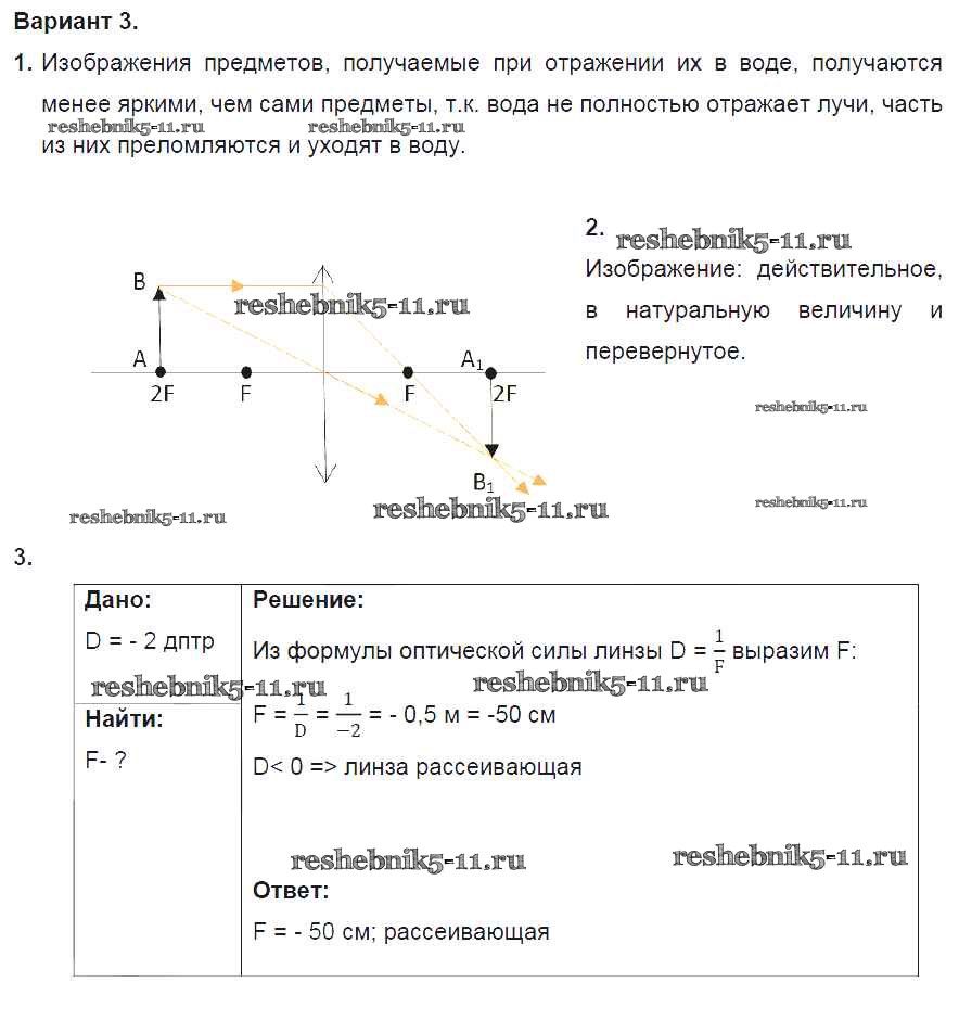 Готовая домашняя работа с ответами по Физике за 8 класс Марон Дидактические материалы Вертикаль Дрофа 2016 ФГОС - СР №13. Преломление света. Линзы. Варианты 3