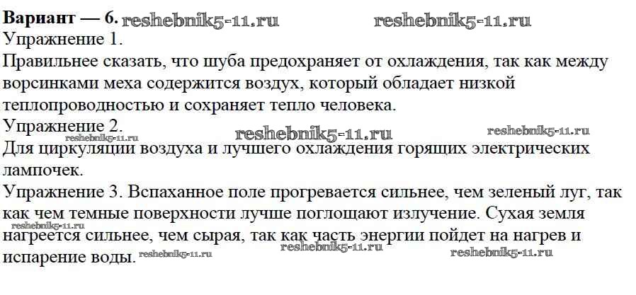 Готовая домашняя работа с ответами по Физике за 8 класс Марон Дидактические материалы Вертикаль Дрофа 2016 ФГОС - СР №2. Виды теплопередачи. Варианты 6