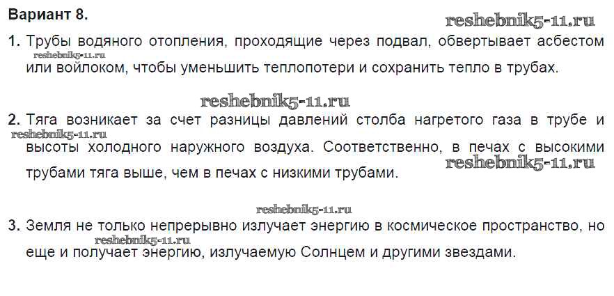 Готовая домашняя работа с ответами по Физике за 8 класс Марон Дидактические материалы Вертикаль Дрофа 2016 ФГОС - СР №2. Виды теплопередачи. Варианты 8