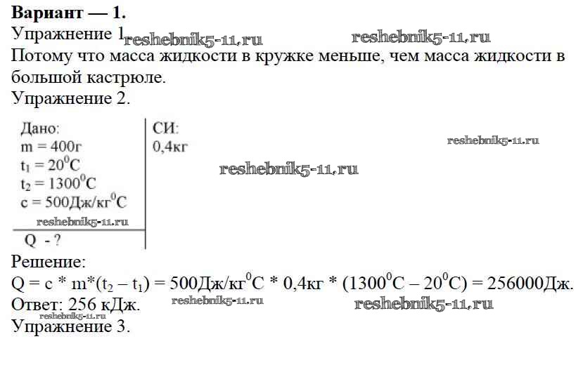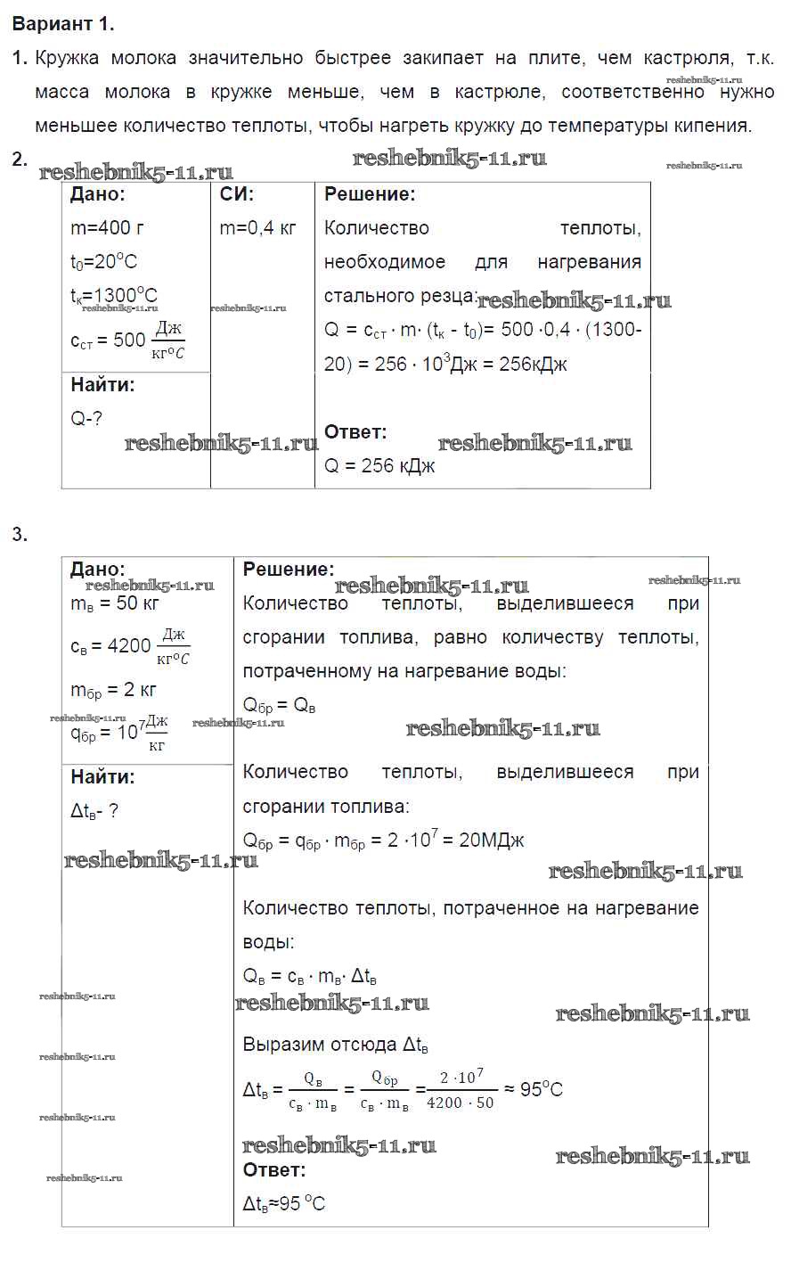 Готовая домашняя работа с ответами по Физике за 8 класс Марон Дидактические материалы Вертикаль Дрофа 2016 ФГОС - СР №3. Количество теплоты. Энергия топлива. Варианты 1