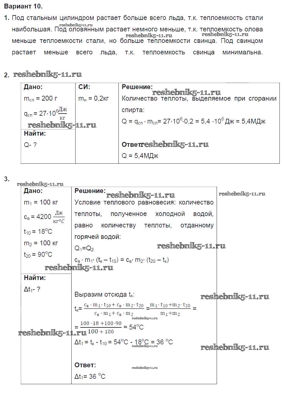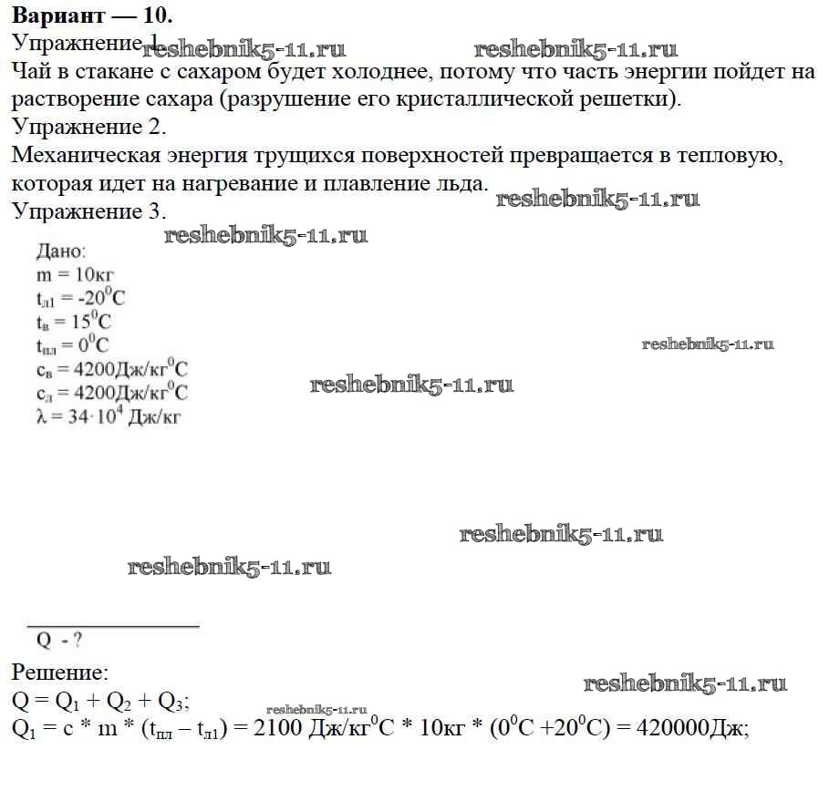 Готовая домашняя работа с ответами по Физике за 8 класс Марон Дидактические материалы Вертикаль Дрофа 2016 ФГОС - СР №3. Количество теплоты. Энергия топлива. Варианты 10