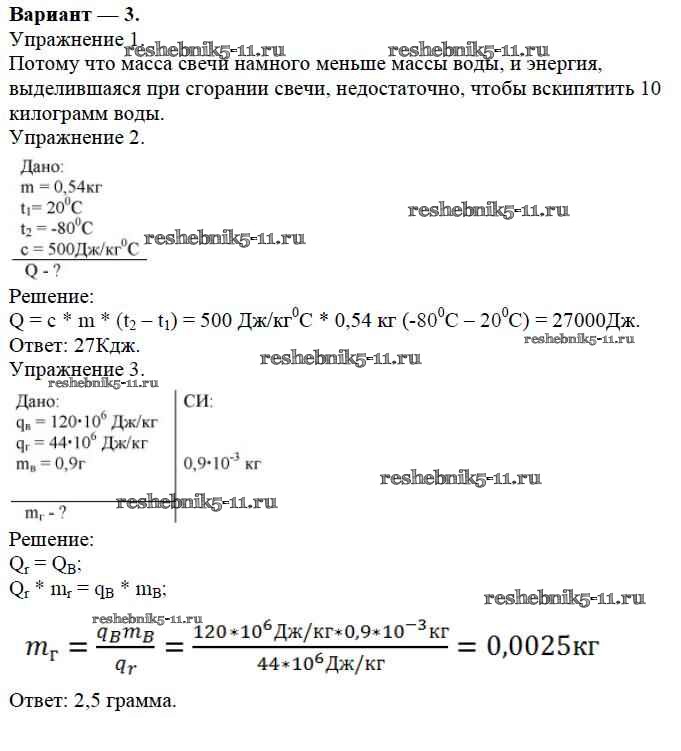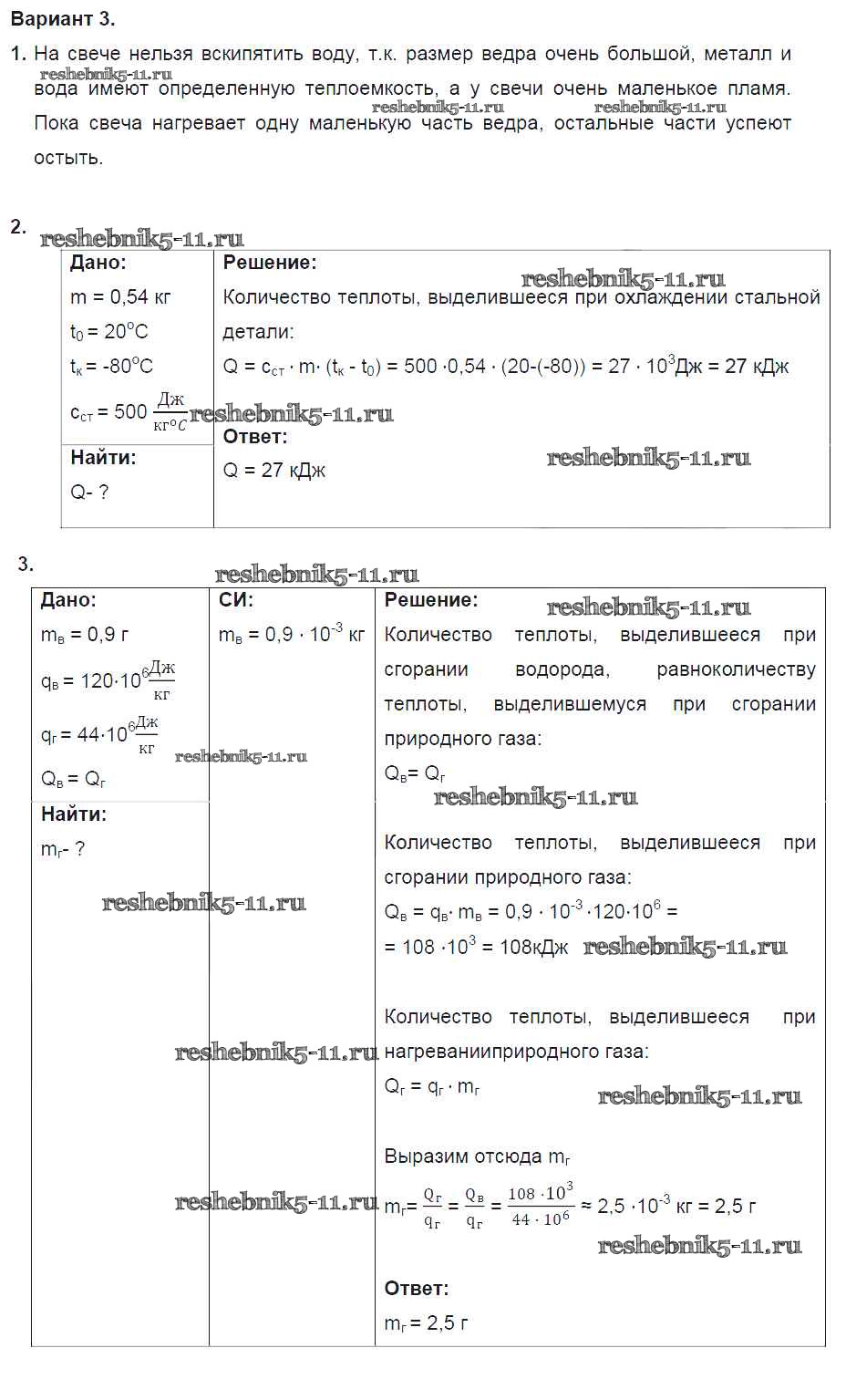 Готовая домашняя работа с ответами по Физике за 8 класс Марон Дидактические материалы Вертикаль Дрофа 2016 ФГОС - СР №3. Количество теплоты. Энергия топлива. Варианты 3