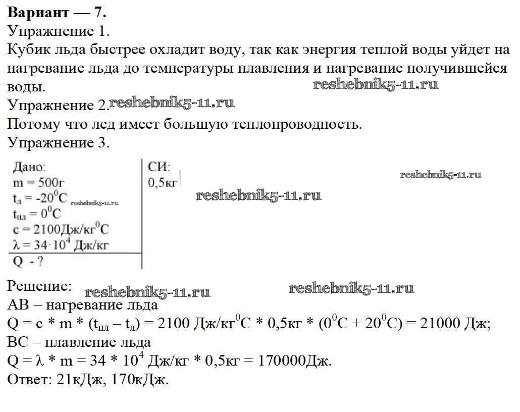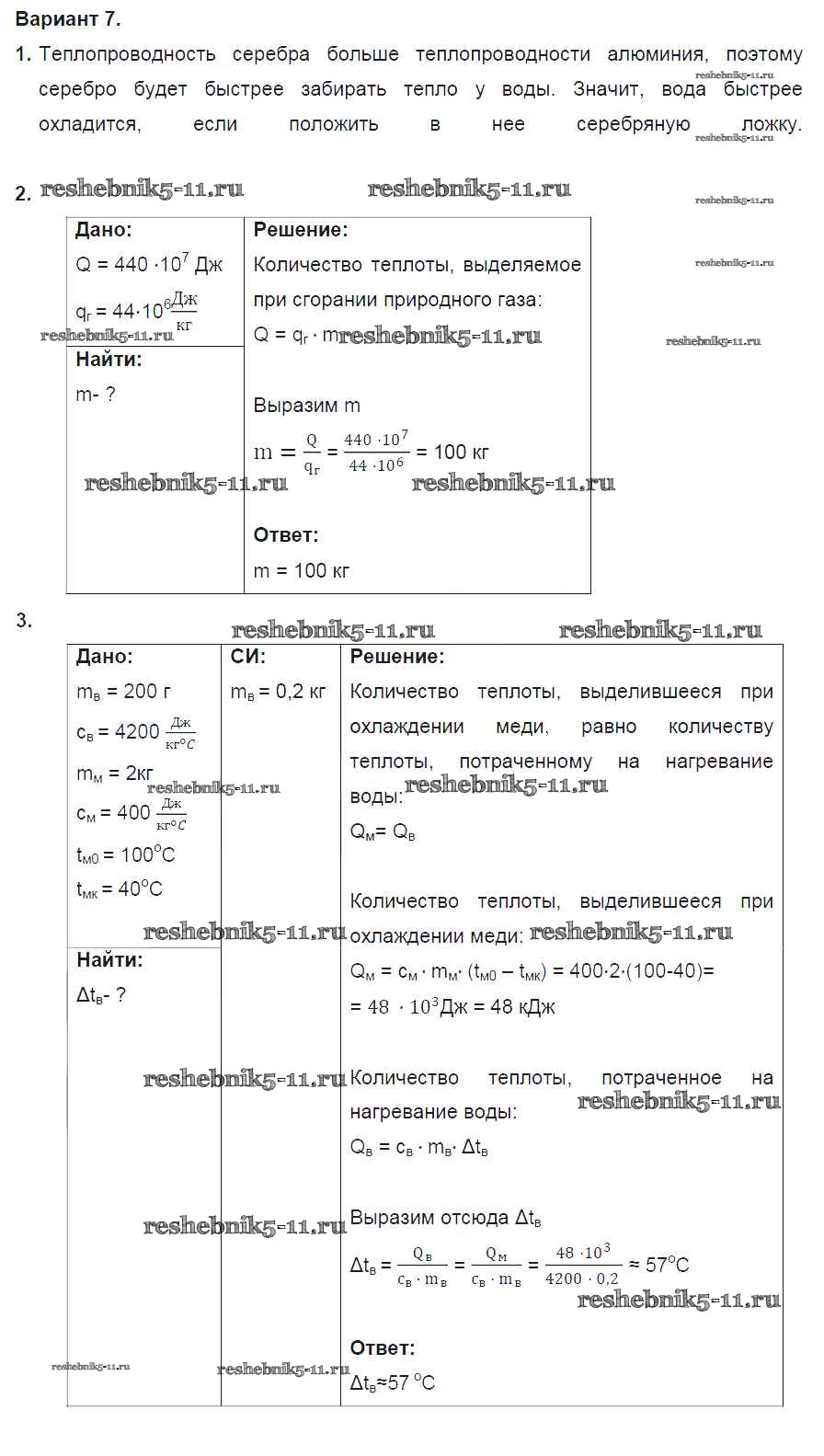 Готовая домашняя работа с ответами по Физике за 8 класс Марон Дидактические материалы Вертикаль Дрофа 2016 ФГОС - СР №3. Количество теплоты. Энергия топлива. Варианты 7