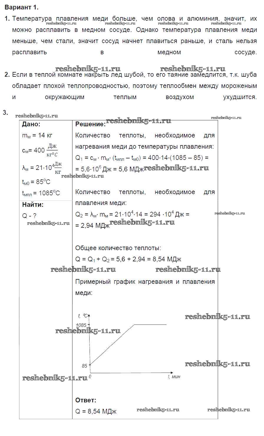 Готовая домашняя работа с ответами по Физике за 8 класс Марон Дидактические материалы Вертикаль Дрофа 2016 ФГОС - СР №4. Плавление и отвердение. Варианты 1