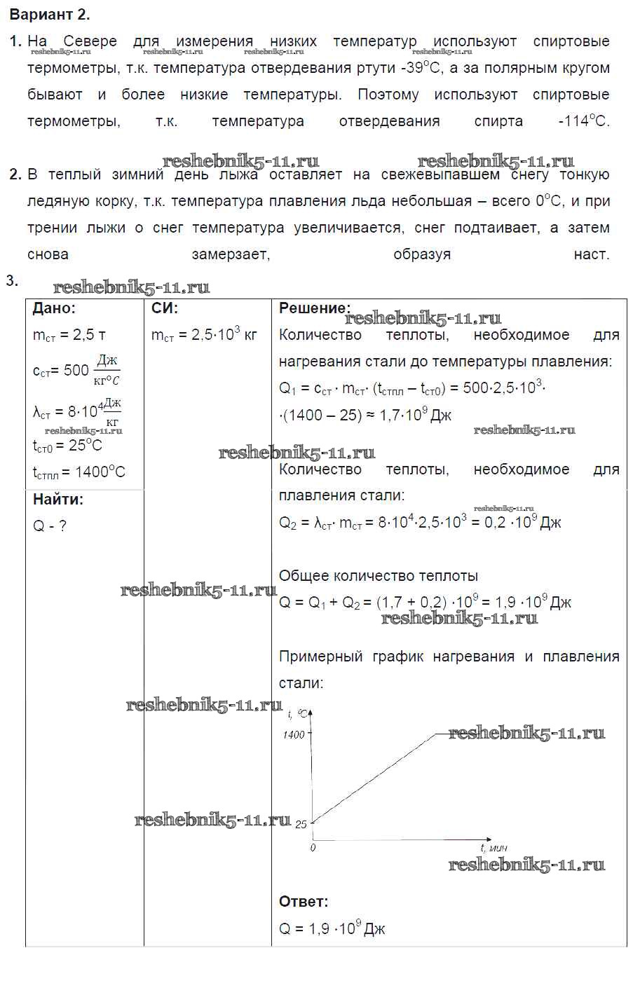 Готовая домашняя работа с ответами по Физике за 8 класс Марон Дидактические материалы Вертикаль Дрофа 2016 ФГОС - СР №4. Плавление и отвердение. Варианты 2