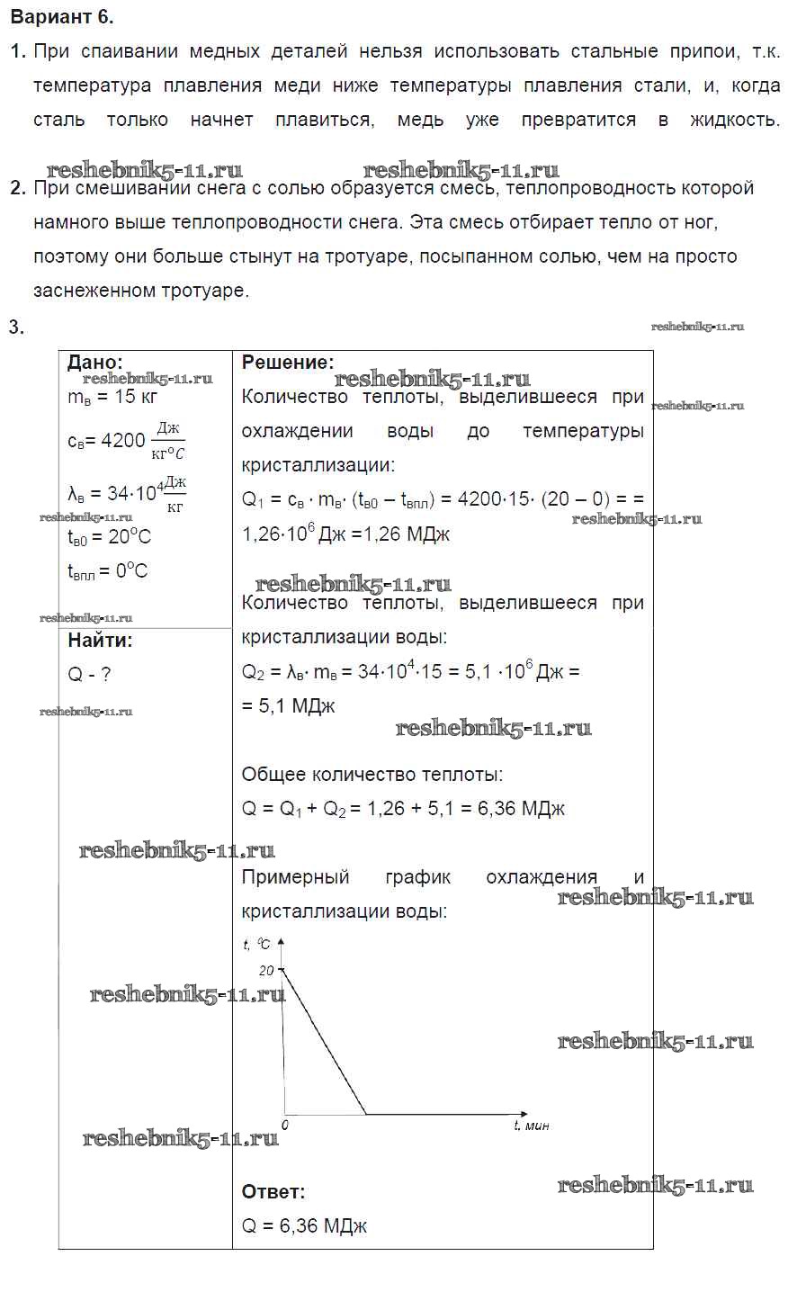 Готовая домашняя работа с ответами по Физике за 8 класс Марон Дидактические материалы Вертикаль Дрофа 2016 ФГОС - СР №4. Плавление и отвердение. Варианты 6