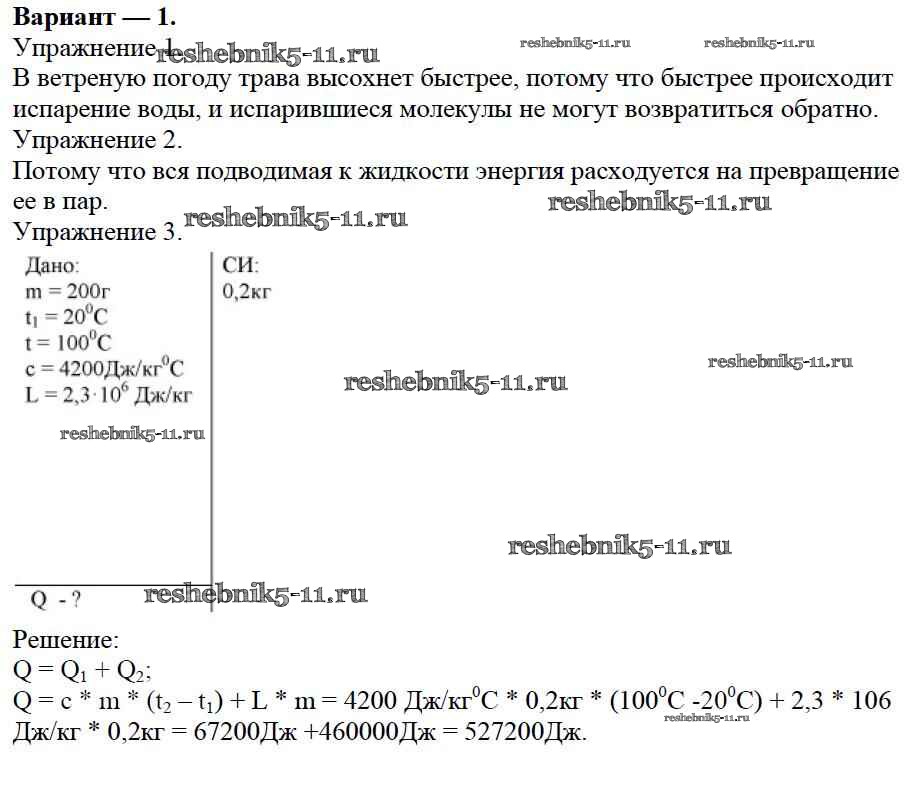 Готовая домашняя работа с ответами по Физике за 8 класс Марон Дидактические материалы Вертикаль Дрофа 2016 ФГОС - СР №5. Испарение и конденсация. Варианты 1