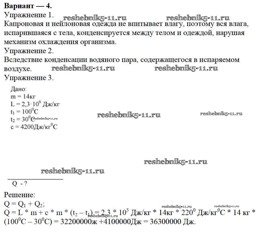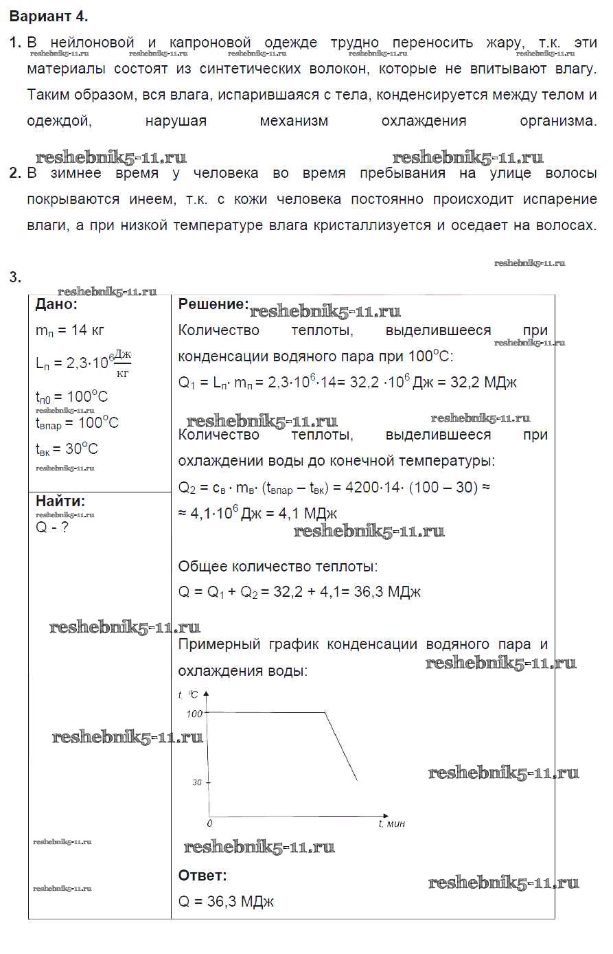 Готовая домашняя работа с ответами по Физике за 8 класс Марон Дидактические материалы Вертикаль Дрофа 2016 ФГОС - СР №5. Испарение и конденсация. Варианты 4