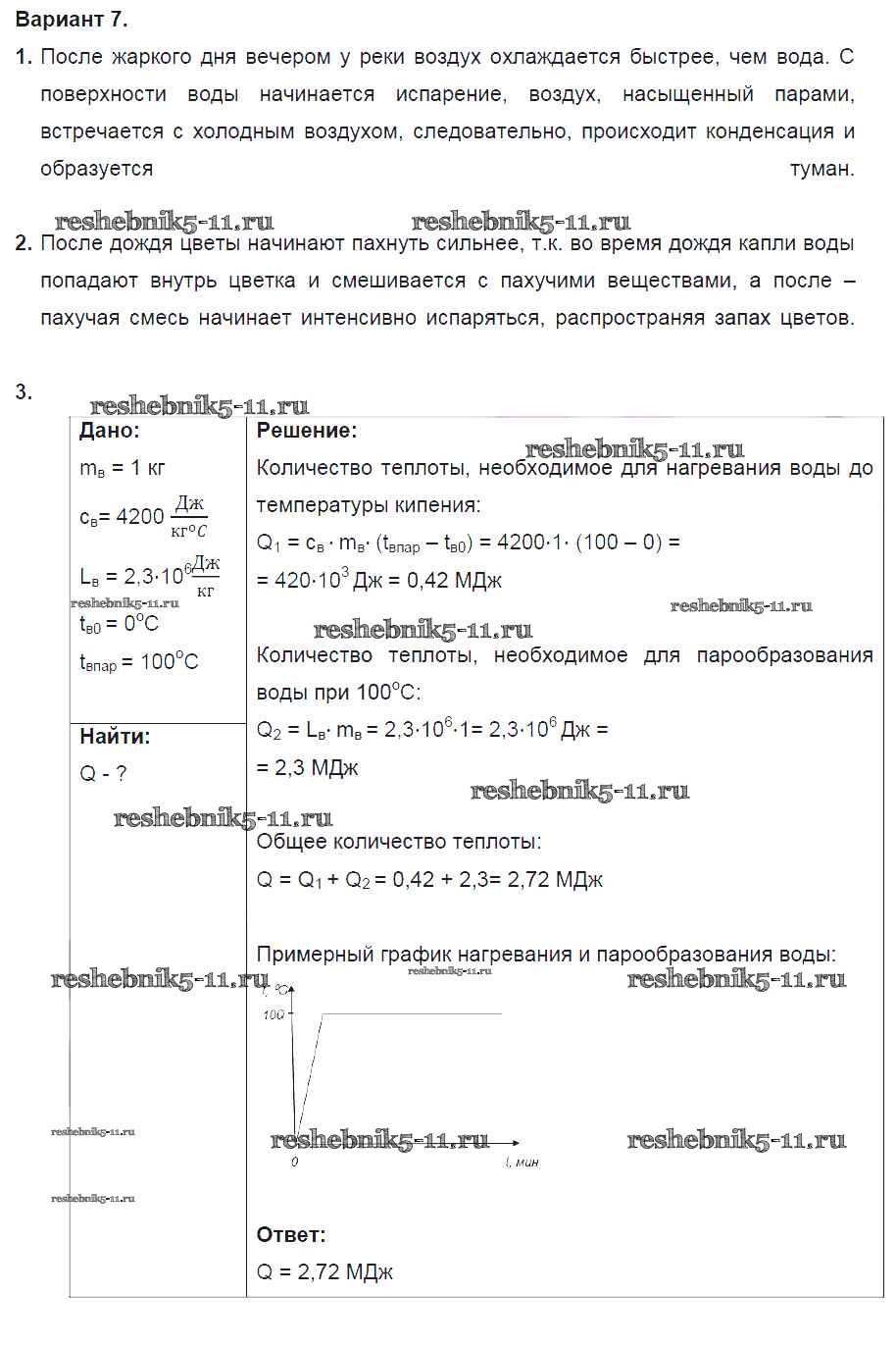 Готовая домашняя работа с ответами по Физике за 8 класс Марон Дидактические материалы Вертикаль Дрофа 2016 ФГОС - СР №5. Испарение и конденсация. Варианты 7