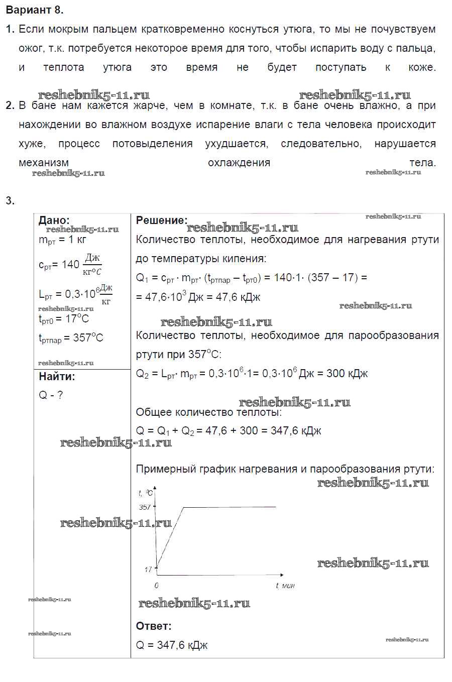 Готовая домашняя работа с ответами по Физике за 8 класс Марон Дидактические материалы Вертикаль Дрофа 2016 ФГОС - СР №5. Испарение и конденсация. Варианты 8