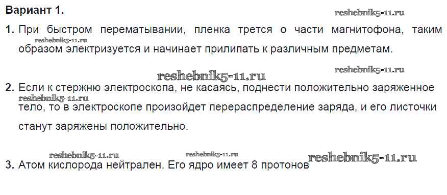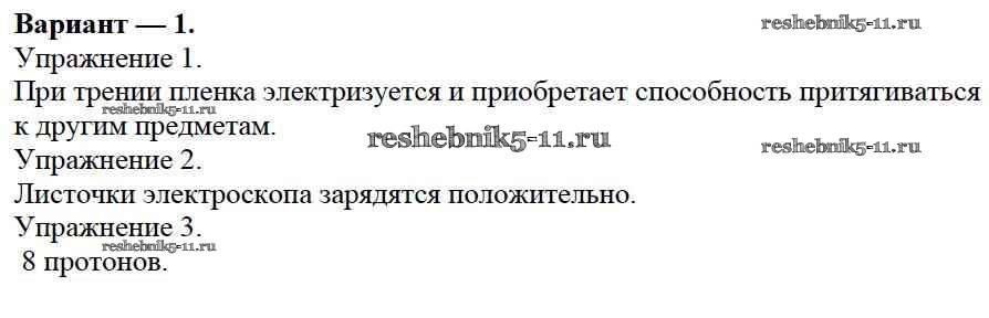 Готовая домашняя работа с ответами по Физике за 8 класс Марон Дидактические материалы Вертикаль Дрофа 2016 ФГОС - СР №6. Электризация тел. Электрическое поле. Строение атома. Варианты 1