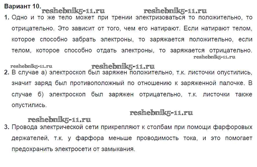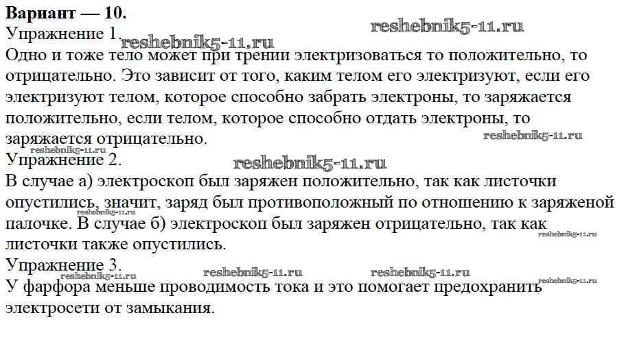 Готовая домашняя работа с ответами по Физике за 8 класс Марон Дидактические материалы Вертикаль Дрофа 2016 ФГОС - СР №6. Электризация тел. Электрическое поле. Строение атома. Варианты 10