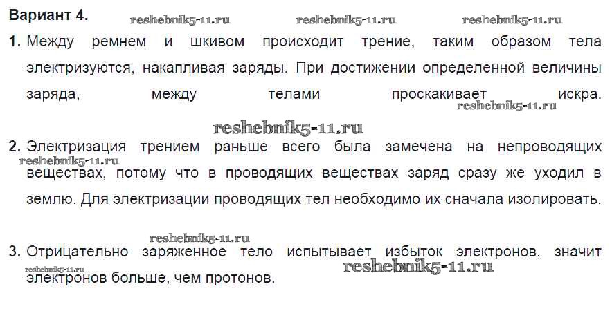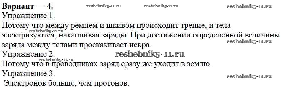 Готовая домашняя работа с ответами по Физике за 8 класс Марон Дидактические материалы Вертикаль Дрофа 2016 ФГОС - СР №6. Электризация тел. Электрическое поле. Строение атома. Варианты 4